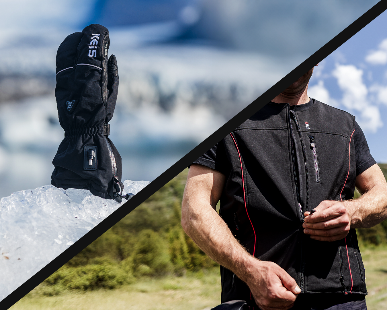 Central Power Hub This garment can be used as a central power hub to other KEIS garments such as gloves through the integrated connectors.